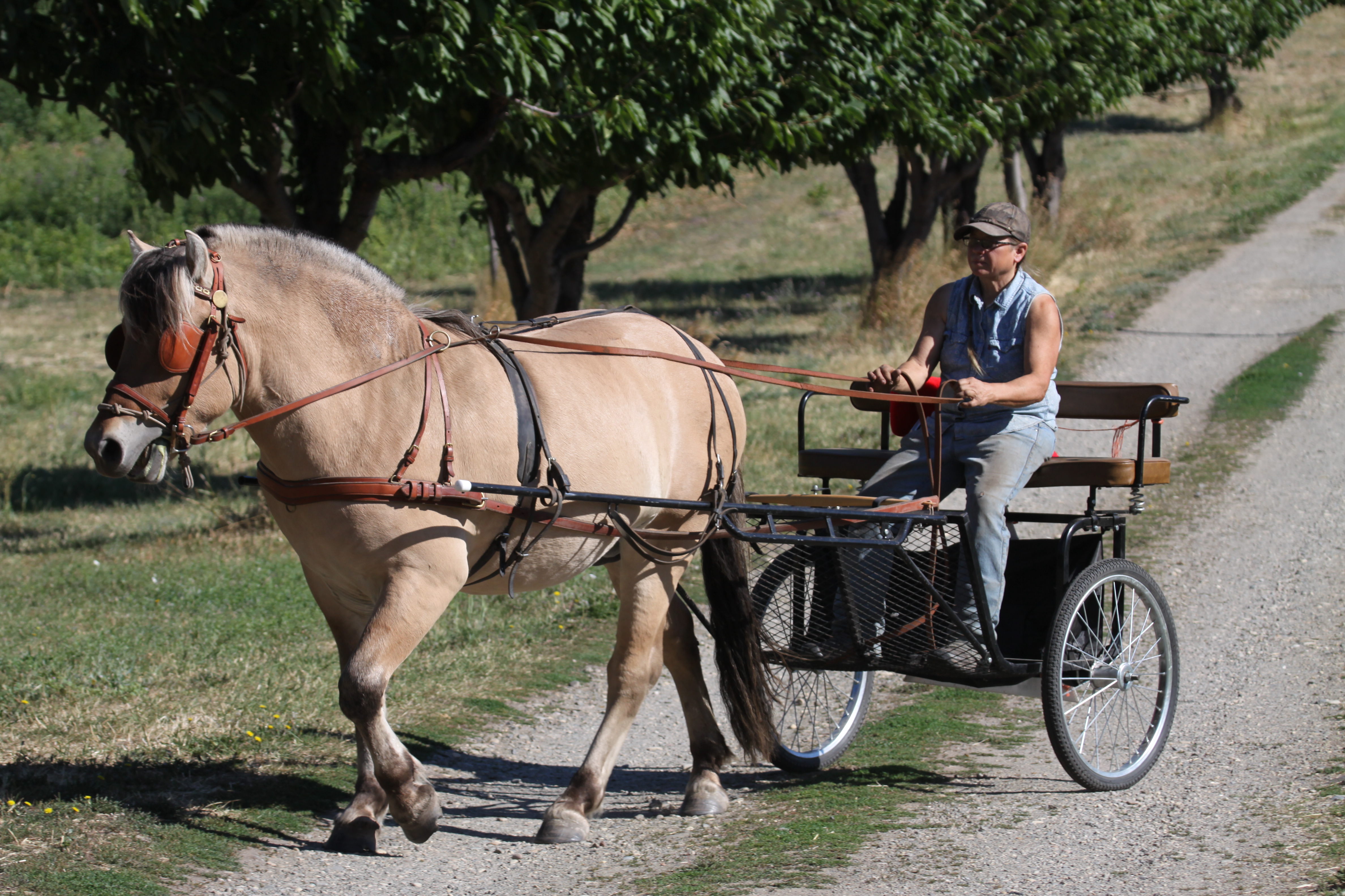 Training to get ready for the August shows began early in the Summer. Harvey was already used to extensive ground training so we moved into the harness and ground driving, then to the cart.