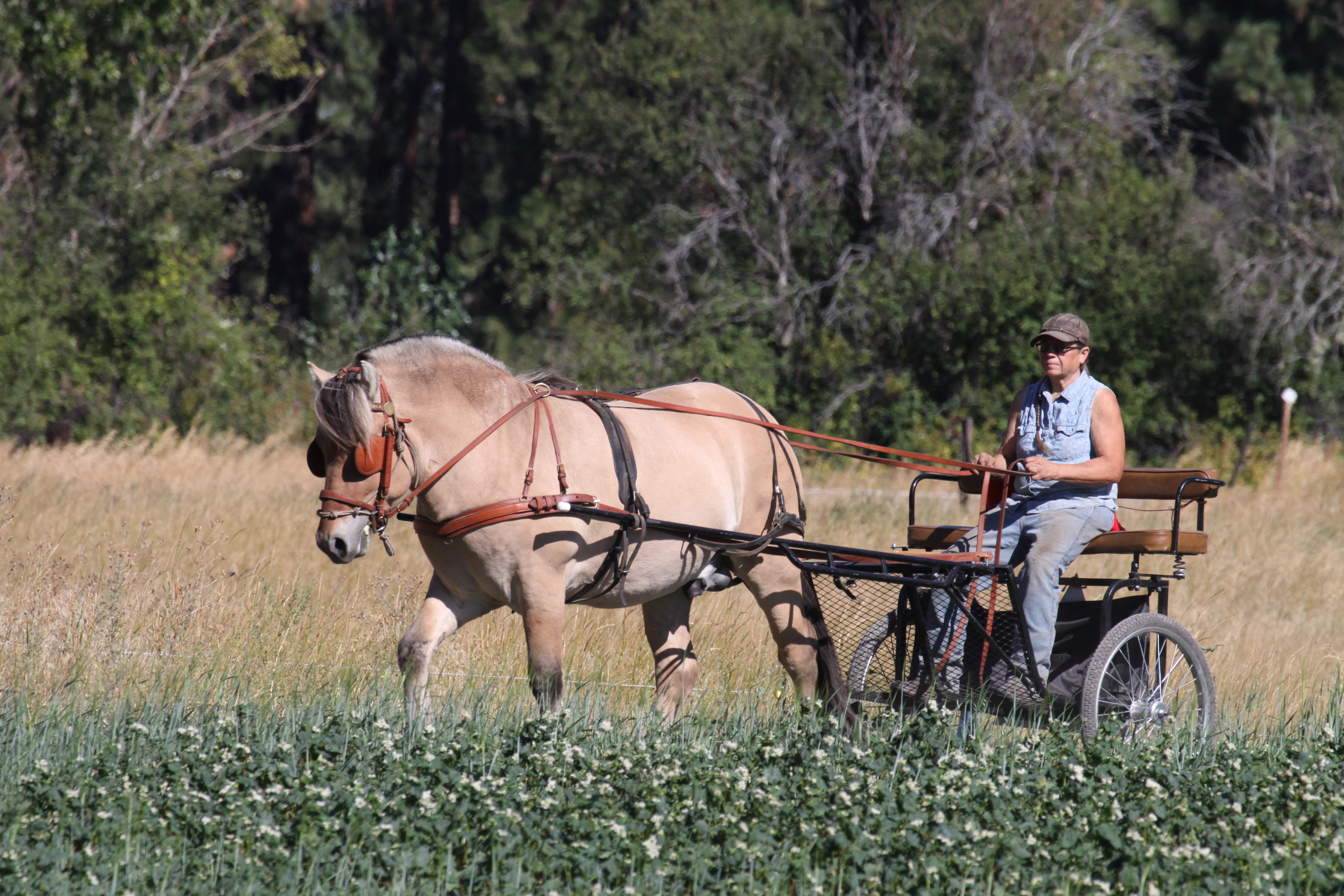 After the trip to Bozeman, we loaded up and headed to Sandpoint ID for the Pacific NW Fjord Promotional Group Horse Show. Harvey was now stacking up some experience and earned his first Blue Ribbon in a Novice Horse Driven Trail Class.